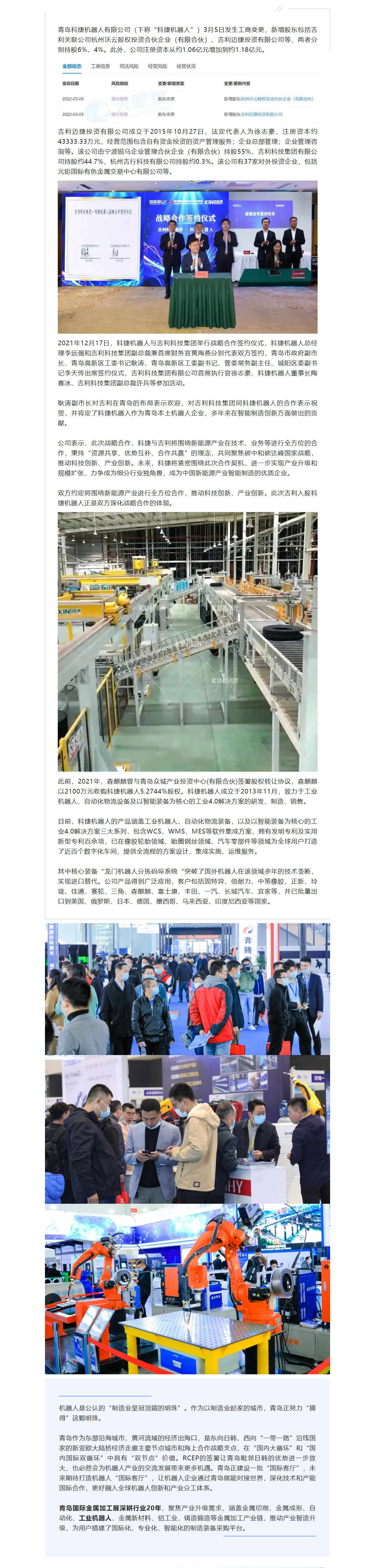 青島科捷機器人獲吉利投資,雙方圍繞新能源產業全方位合作